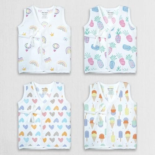1ST STEP 100% Soft Muslin Cotton Side Knot Baby Jhabla – Pack of 4 – Set 1 – New Born – Fast Shipping to USA & Canada