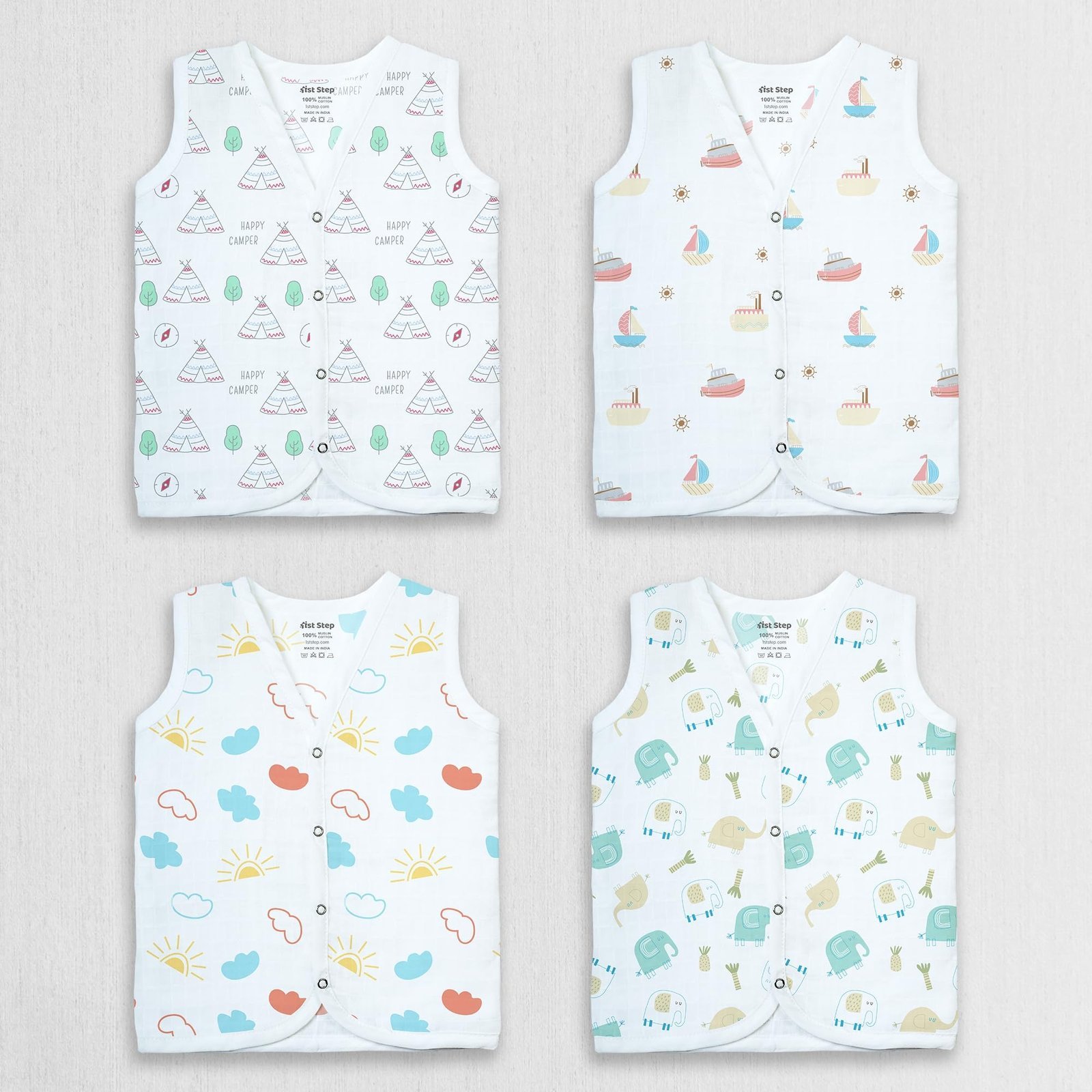 1ST STEP 100% Soft Muslin Cotton Snap Button Baby Jhabla – Pack of 4 – Set 2 – New Born – Fast Shipping to USA & Canada