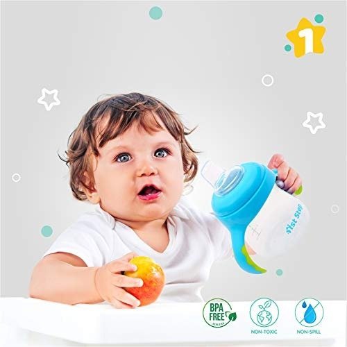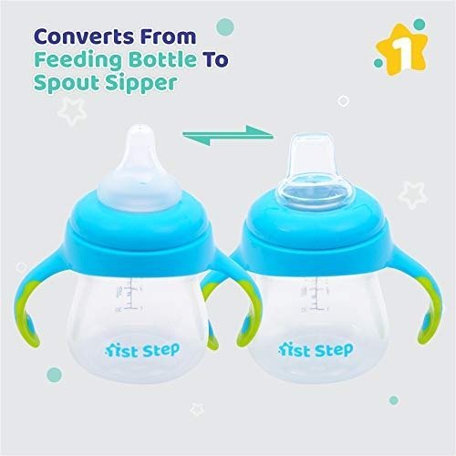 1st Step 2 in 1 BPA Free Polypropylene Feeding Bottle Cum Soft Spout Sipper with Twin Handle (Blue) – Fast Shipping to USA & Canada