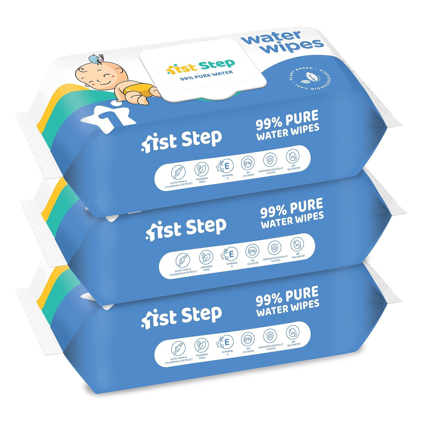 1st Step 99% Pure Water Baby Wipes with lid I Dermatologically Tested | Alcohol Free Baby wipes |72 pcs/Pack – Pack of 3 Combo – 216 Wipes – Fast Shipping to USA & Canada