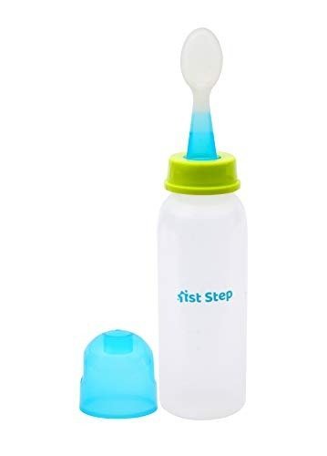 1st Step BPA Free Polypropylene Easy Squeeze Feeder with Spoon (250ml, Blue) – Fast Shipping to USA & Canada