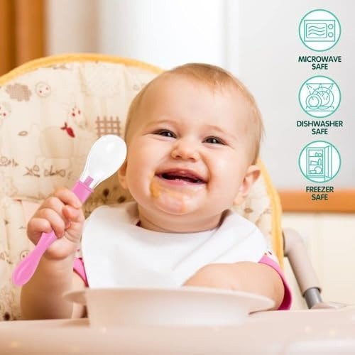 - Ideal Feeding spoon for baby of 4 months and above. Comes with Ergonomic handle