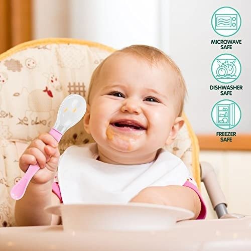 - Ideal Feeding spoon for baby of 4 months and above. Comes with Ergonomic handle