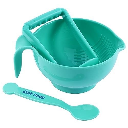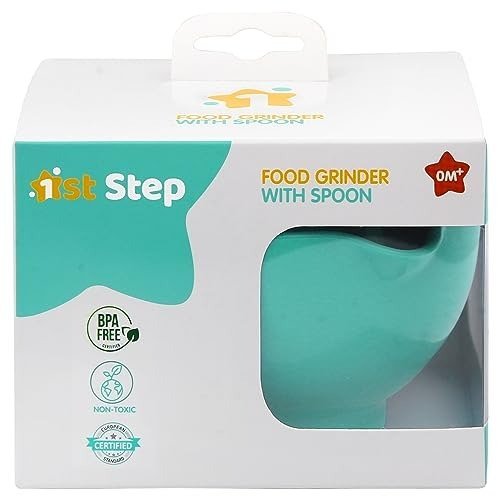 1st Step Food grinder helps to easily and quickly mash up fruits and vegetables.Ridges in the bowl provides good friction for mashing up food and avoid slipping when mashing. Grooves in the masher handle ensure even mashing & avoid leaving any big chunks. Can use as feeding bowl with easy to hold handle. Easy to clean & use on the go. Contains Spoon with easy grip handle.