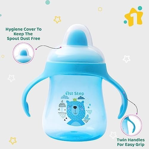 1ST STEP Matte Collection BPA Free Polypropylene Hard Spout Sipper with Twin Handles for Easy Grip – Blue – Fast Shipping to USA & Canada