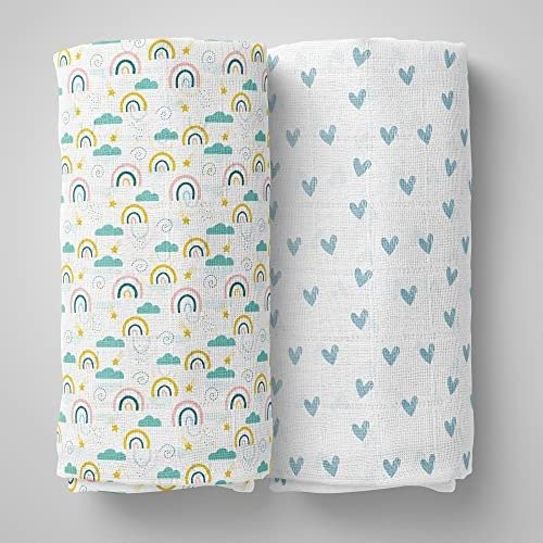 1ST STEP Muslin Swaddle 60cm*75cm (Pack of 2) Rainbow, Hearts – Fast Shipping to USA & Canada