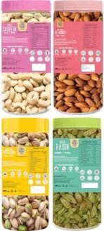 6 reviews for 41 FOODS Premium Dry Fruits and Nuts Combo of Healthy Fresh Cashews Almonds Pistachios Raisins Nutritious Badam Kaju Pista Kishmish 200Gm X 4 800Grams – Fast Shipping to USA & Canada