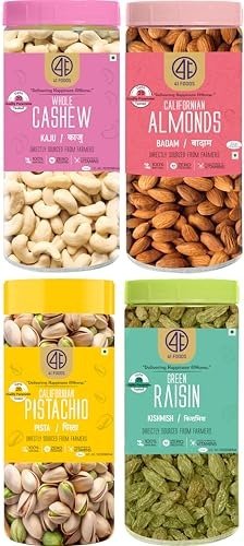 6 reviews for 41 FOODS Premium Dry Fruits and Nuts Combo of Healthy Fresh Cashews Almonds Pistachios Raisins Nutritious Badam Kaju Pista Kishmish 200Gm X 4 800Grams – Fast Shipping to USA & Canada