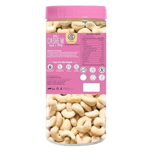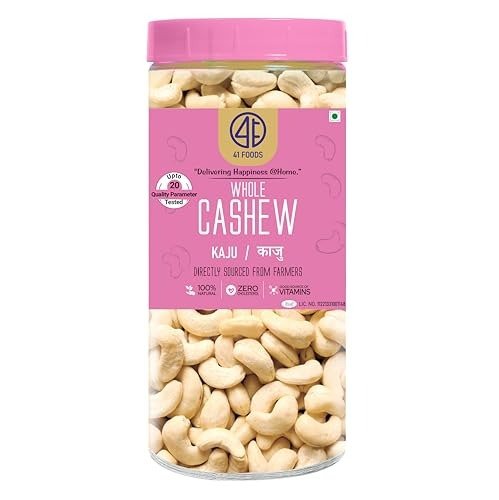 41 FOODS Premium Nuts Whole Cashews Nutritious Delicious Kaju Protein Magnesium Vit-E K B6 Crunchy Fresh Tasty Kaaju Dry Fruits Healthy Snack 500Gm – Fast Shipping to USA & Canada