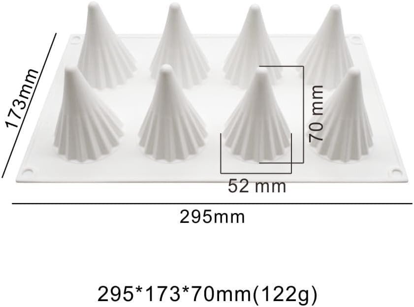 • 1 – Environmentally friendly, safe for food contact, soft, non-stick, reusable, and simple to clean. Ideal for preparing French desserts, cakes, mousse, chocolate, pastry decoration, and more. Package contains one 8-cavity Christmas mold. Dimensions: 29.5 x 17.3 x 7 cm.