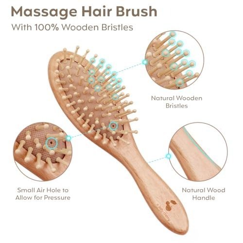 - SECURE WOODEN MASSAGE BRUSH– Designed to prevent scalp irritation, this newborn hairbrush is crafted from durable beech wood and soft silica gel. The brush head features gentle contact nodes that soothe and massage your baby?s scalp, encouraging relaxation. Regular use of this baby hairbrush not only calms your little one but also stimulates healthy blood flow to the scalp through its massaging bristles.