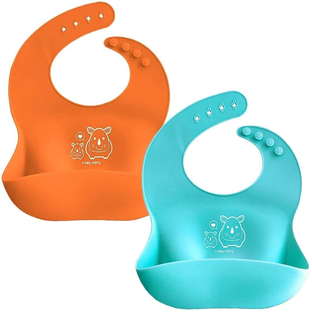 a baby cherry – Baby Bibs | Bib For Baby | Comfortable Soft, Durable, Easy Wipe, Waterproof, Adjustable Neckline Buttons | Silicone Bib for Feeding Infants and Toddlers| (6M to 5Y) Set of 2 – Fast Shipping to USA & Canada