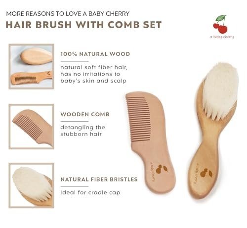 A Baby Cherry – Baby Comb,Baby Hair Brush, 2 Piece Premium Baby Brush & Comb Set | Natural Fiber Hair Brush for Toddler | Perfect Baby Grooming Kit – Fast Shipping to USA & Canada