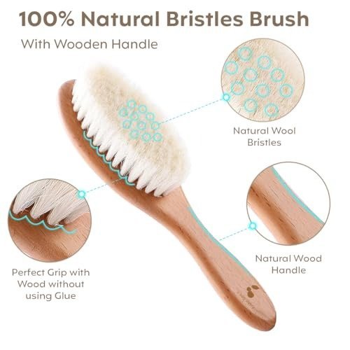 - GENTLE BRUSH- – Perfect for Cradle Cap – Crafted from 100% natural goat hair and beech wood, this baby brush features ultra-soft, pure wool bristles for a soothing touch. Designed for infants aged 0-2 years, it helps keep your baby?s scalp clean and can reduce cradle cap with consistent use.