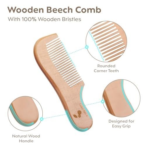 - PEER WOOD COMB– Crafted from anti-static wood, this baby hair brush is perfect for newborns, gently untangling even the most difficult knots. The sturdy and long-lasting wooden design makes it easy to smooth out your baby’s tangled hair with care and efficiency.