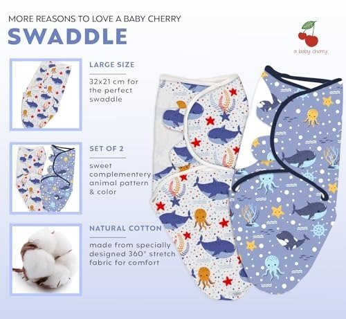 a baby cherry – Baby Swaddle Wrap for New Born || Adjustable Swaddle for New Born Baby || 100% Cotton Soft Baby Blanket for 0-6 Months – Pack of 2 (Multi-Color, 200 GSM) – Fast Shipping to USA & Canada