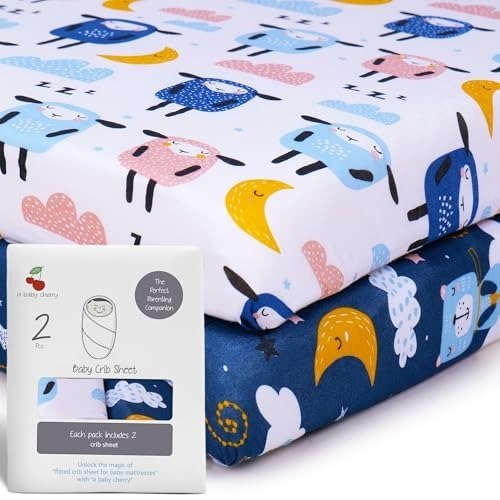 - PREMIUM QUALITY & SIMPLE MAINTENANCE – Crafted with attention to detail, these baby bedsheet sets are made from handpicked fabrics that ensure softness, comfort, and breathability. Constructed from 100% jersey cotton, the sheets resist fading and are conveniently machine washable for effortless upkeep. For best results, tumble dry on low or hang to dry, helping maintain the vibrant, cheerful patterns. Perfectly suited for babies from newborn up to 2 years old.