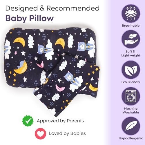 • LUXURY INFANT PILLOW WITH REMOVABLE COVER – Made from airy, organic combed cotton, this pillow offers exceptional softness and is kind to sensitive baby skin. Its innovative 3D-Air mesh structure boosts ventilation, ensuring your little one stays cool and cozy. Designed to be lightweight, machine-washable, and sturdy-perfect for daily use by busy parents.