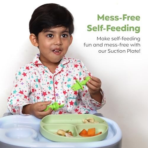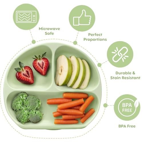 - EASY SELF-FEEDING – Crafted from high-quality silicone, our suction plate is perfect for babies and toddlers practicing independent eating. The powerful suction base keeps the plate securely in place, reducing spills and mess. Great for use on highchair trays or tables.