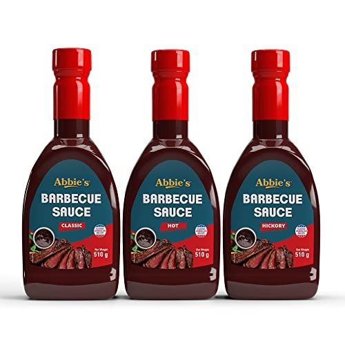 ABBIE’S BBQ Sauce Classic 510 g || BBQ Sauce Hot 510 g || BBQ Sauce Hickory 510 g || Enjoy with Grilled Vegetables | Add to pizza sauce for smoky zing| Mix with Mozzarella cheese onto your Pizza Base – Fast Shipping to USA & Canada