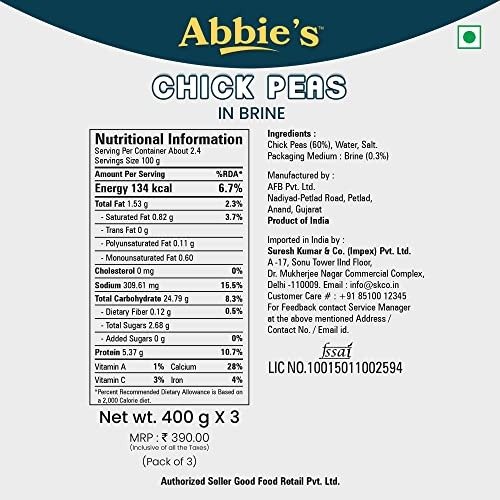 14 reviews for Abbie’s Chick Peas 1200 Gm (400 Gm X 3 Units), Precooked Chickpeas Best For Indian Curry, Salad, Boiled, Ready To Eat & Ready To Cook Chickpeas (Set Of 3) – Fast Shipping to USA & Canada