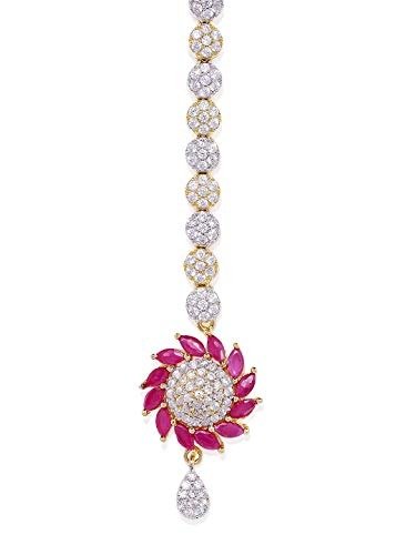 Accessher Dual Tone AD & Pink Stone Floral Maang Tikka – Fast Shipping to USA & Canada