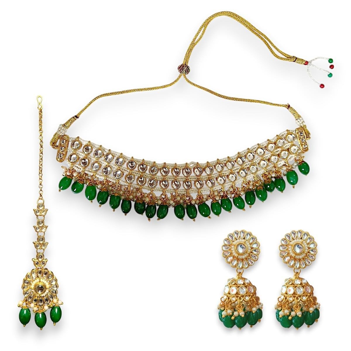 ACCESSHER Gold Plated Green Pearl Choker Necklace Set | Kundan Jewellery Set with Matching Jhumka Earrings | Traditional Choker Necklace for Women & Girls – Fast Shipping to USA & Canada