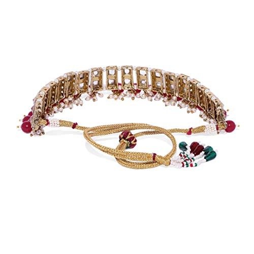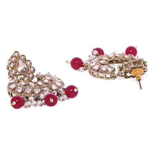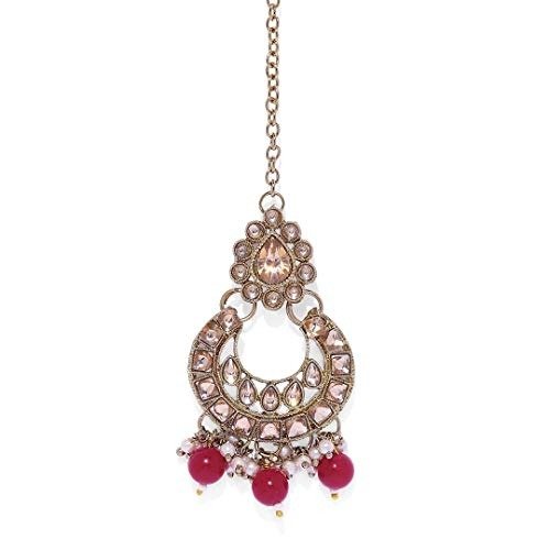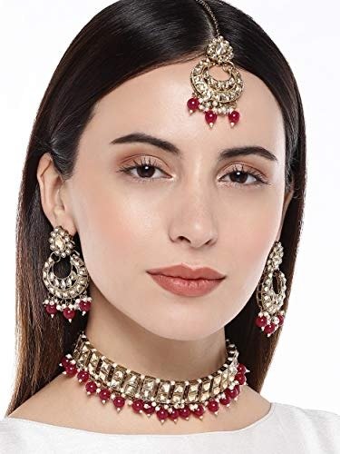 ACCESSHER Gold Plated Pink Sparkling Rhinestone embellished Choker Set and Beads with Earrings and maang tika for women and girls – Fast Shipping to USA & Canada