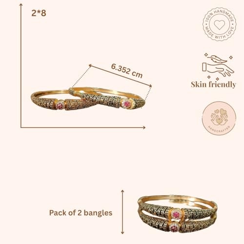 AccessHer unveils a breathtaking collection of gold-plated traditional kada bangles that seamlessly merge classic sophistication with enduring Indian artistry. Meticulously crafted for women and girls who appreciate regal ethnic jewelry, these stunning bangles are designed in an opulent Rajwadi style and adorned with a lavish antique gold finish. They serve as a graceful enhancement to wedding jewelry collections and traditional outfits.