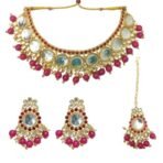 AccessHer introduces an exquisite Gold Plated Drop Kundan Studded Choker Necklace Set, designed for women and girls who appreciate the fusion of timeless elegance and contemporary allure. This traditional kundan necklace set beautifully marries the rich heritage of Indian jewelry craftsmanship with modern aesthetics, making it an essential ethnic accessory for every jewelry enthusiast.