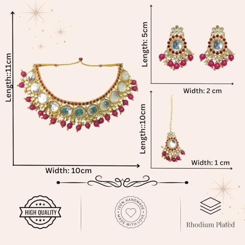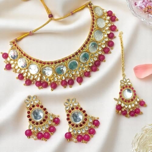 AccessHer introduces an exquisite Gold Plated Drop Kundan Studded Choker Necklace Set, designed for women and girls who appreciate the fusion of timeless elegance and contemporary allure. This traditional kundan necklace set beautifully marries the rich heritage of Indian jewelry craftsmanship with modern aesthetics, making it an essential ethnic accessory for every jewelry enthusiast.