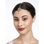 AccessHer’s current Kundan and Pearls Traditional Maangtikka beautifully combines sophistication with cultural allure in a compact, wearable design. Tailored for both young girls and women, this petite maangtikka is perfect for anyone seeking elegance. Its standout feature is the floral design, crafted from radiant kundan stones that reflect light exquisitely. The delicate pearl embellishments and a striking red bead provide a timeless yet captivating contrast. Whether you’re preparing for a wedding, a puja, or any special event, this piece of jewelry effortlessly elevates your traditional attire. The lightweight gold-tone chain ensures comfort for all-day wear, while the hook at the end facilitates quick and secure fastening. It pairs wonderfully with lehengas, sarees, or salwar suits to complete your look. If you desire a piece that makes a statement while remaining understated, this Maangtikka for Women and Girls is a delightful option that harmoniously fuses tradition with elegance. It also makes a thoughtful gift and is an essential addition to your ethnic jewelry collection, suitable for all ages and occasions.