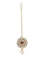 ACCESSHER Kundan & Pearl Maang Tikka with Red Beads – Fast Shipping to USA & Canada
