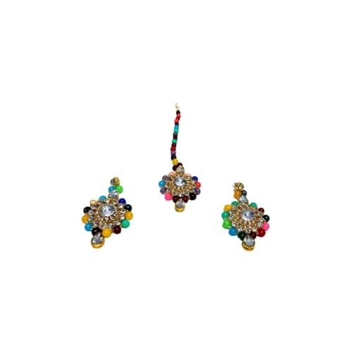 ACCESSHER Multicolor Beaded Kundan Statement Choker Necklace Set with Earrings & Maangtika – Fast Shipping to USA & Canada