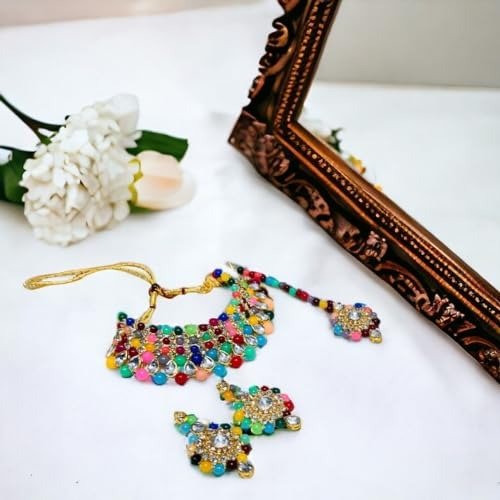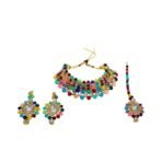 7 reviews for ACCESSHER Multicolor Beaded Kundan Statement Choker Necklace Set with Earrings & Maangtika – Fast Shipping to USA & Canada