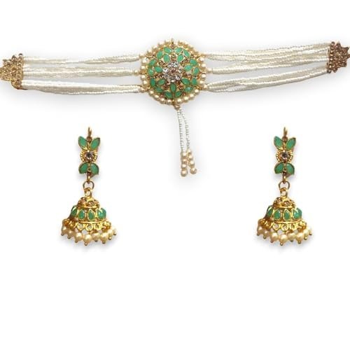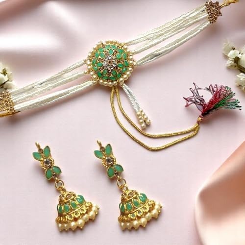 AccessHer introduces an exquisite pendant necklace set adorned with pearl beads, seamlessly merging contemporary sophistication with classic charm. This choker ensemble showcases premium pearls, celebrated for their sleek texture and inherent shine, making it an ideal choice for women and girls who value exquisite jewellery. The set comprises a stunning choker, a complementary pair of earrings, and a harmonized design that creates a unified aesthetic. Whether you’re preparing for a wedding, a special occasion, or simply enhancing your daily attire, this jewellery set provides the perfect finishing touch to your outfit. Constructed from resilient alloy and designed for comfort, this set serves as a versatile and enduring accessory. Its adjustable clasp accommodates various neck sizes. To maintain your jewellery’s pristine condition, steer clear of water, fragrances, and harsh chemicals. Incorporate this elegant pearl beads pendant choker set into your collection and relish the timeless grace it adds to any event.