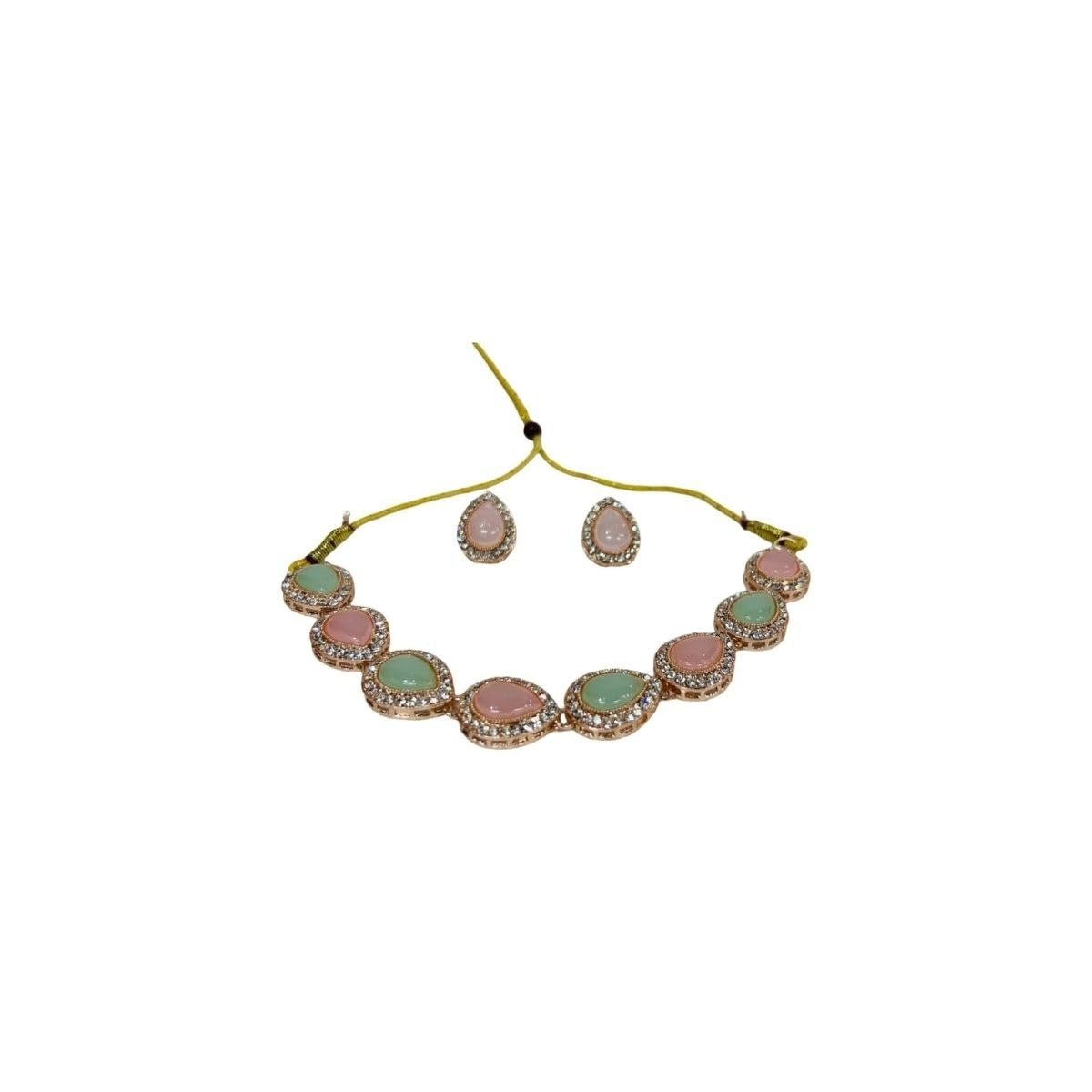 ACCESSHER Pink & Green Kundan Jewellery Choker Necklace Set – Fast Shipping to USA & Canada