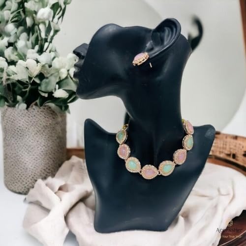 7 reviews for ACCESSHER Pink & Green Kundan Jewellery Choker Necklace Set – Fast Shipping to USA & Canada