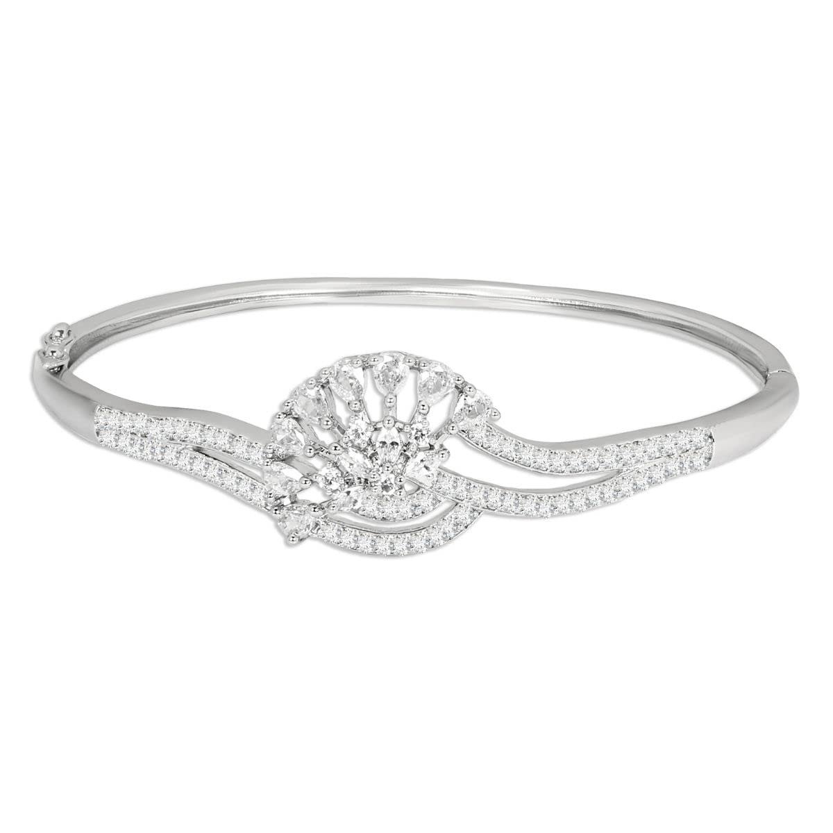 AccessHer unveils a stunning silver-plated bracelet that reimagines sophistication and allure through its captivating design and shimmering American diamonds. Expertly crafted, this delicate bangle showcases an elaborate floral pattern that seamlessly merges artistry with elegance. The radiant silver plating emits a refined shimmer, enhancing the brilliance of the meticulously chosen American diamonds that highlight its intricate craftsmanship. An innovative interlocking clasp guarantees a secure fit, allowing for effortless wear on any occasion. Its robust construction ensures longevity, enabling you to appreciate its beauty for years to come. Whether at weddings, parties, or special events, this adaptable piece complements both traditional and contemporary attire, ensuring you exude charm. The combination of silver plating and dazzling American diamonds produces a luminous effect that elevates your style. Designed to enchant, this bracelet harmonizes luxury and allure, making it an essential addition to your collection.