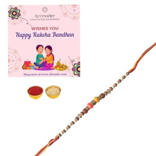 ACCESSHER Traditional Beads Rakhi with Roli Kumkum & Card – Fast Shipping to USA & Canada