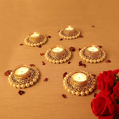 Accessher Traditional Pearl Embedded Diya/Candle Holders (Pack of 2) – Fast Shipping to USA & Canada