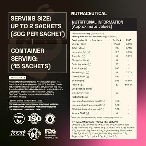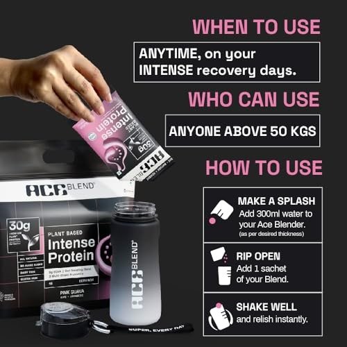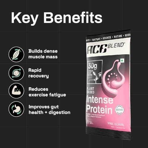 Ace Blend INTENSE 30G A-Grade Plant based Protein Powder| 15 Servings | Pink Guava Flavor | Packed with Probiotics, Fiber, 6g BCAA | 95%+ Bioavailable | Supports Lean Muscle Growth & Recovery – Fast Shipping to USA & Canada