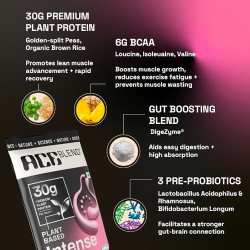 - OPTIMAL FOR LEAN MUSCLE DEVELOPMENT AND RECOVERY: Tailored for athletes and those with active lifestyles, Ace Blend INTENSE offers superior support for lean muscle growth and effective recovery. This plant-based protein powder promotes digestion and gut health, making it a vital addition to any fitness routine.