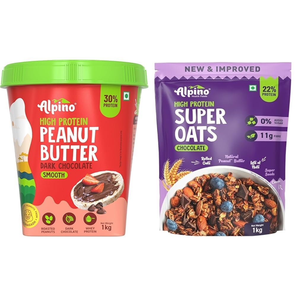 ALPINO High Protein Dark Chocolate Peanut Butter Smooth 1kg & ALPINO High Protein Super Rolled Oats Chocolate 1kg – Fast Shipping to USA