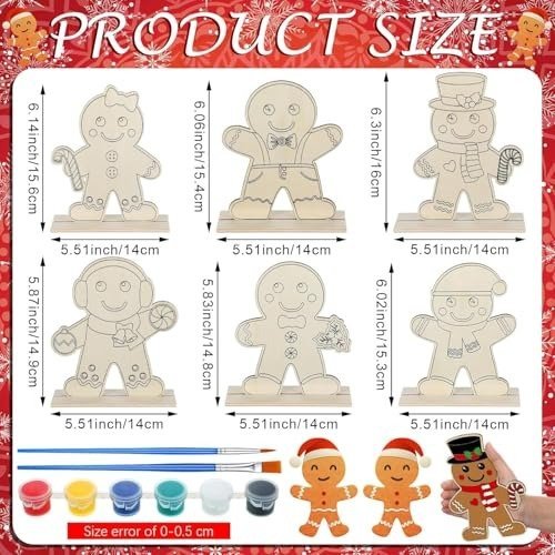 All-Inclusive Craft Kit: Comes with 24 blank wooden gingerbread figures, sturdy stands, a variety of paint colors, and brushes-ideal for children?s holiday crafting sessions.