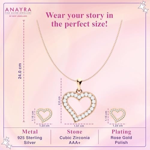 ANAYRA 925 Sterling Silver Heart Pendant Set for Women | Hallmark Certified Jewellery Gift – Fast Shipping to USA & Canada
