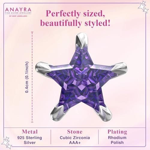 ANAYRA 925 Sterling Silver Purple Star Stud Earrings for Women & Girls | Hallmark Certified Fashion Jewellery – Fast Shipping to USA & Canada