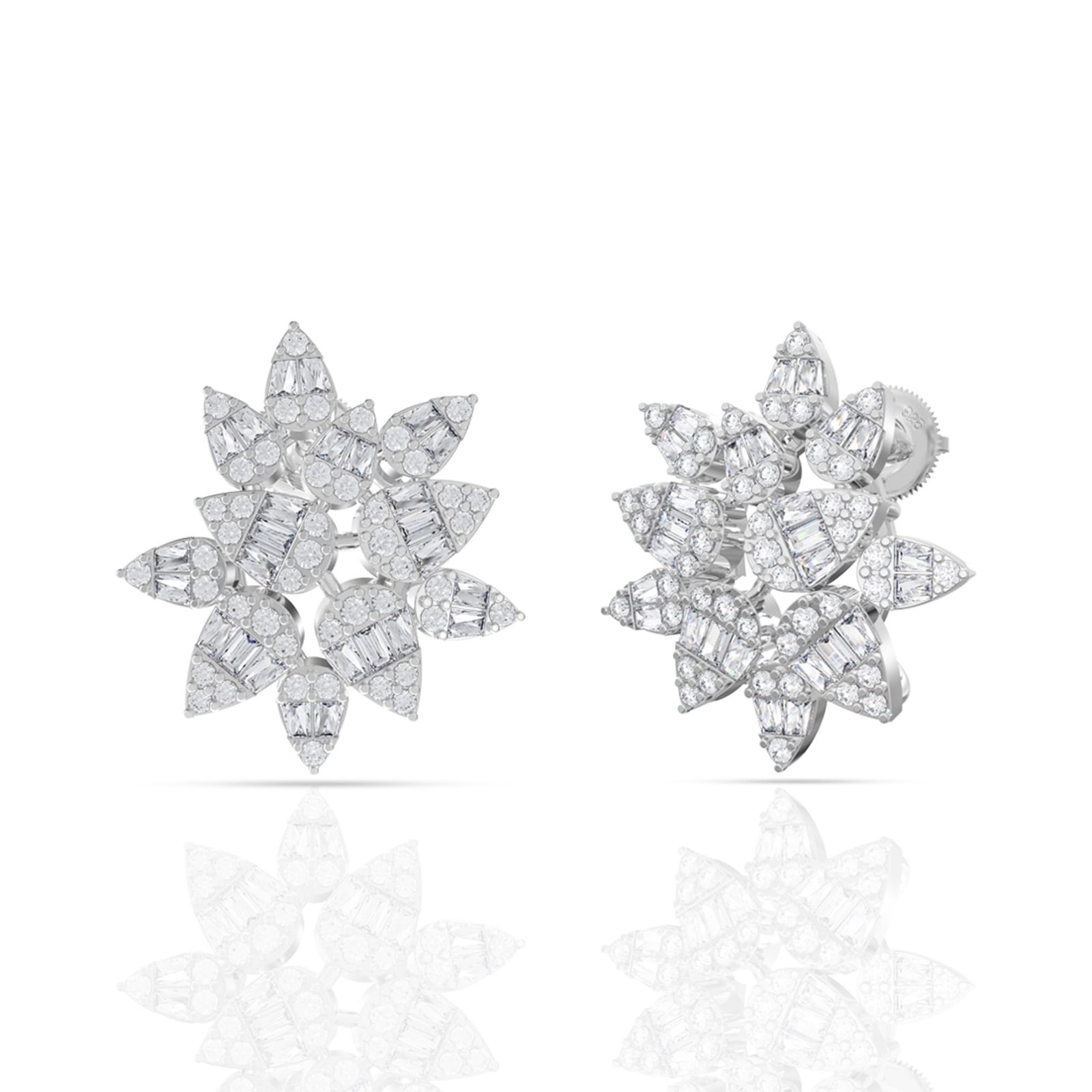- Product Information: Presenting the Silver Leafy Floral Stud Earring, measuring 1.8 cm in length. This stunning piece is carefully crafted from 925 Sterling Silver and finished with a rhodium polish, showcasing AAA quality Cubic Zirconia (CZ) stones. It is packaged in a unique and secure gift box, accompanied by a certificate of authenticity.