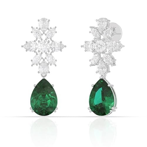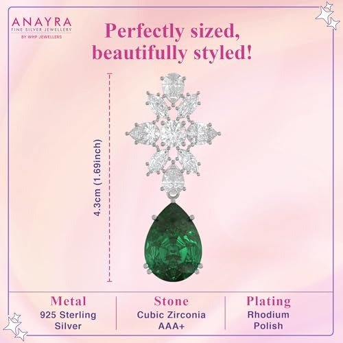 - Product Information: Presenting the Silver Floral Green Drop Earrings, measuring 4.3 cm in length. This stunning piece is carefully crafted from 925 Sterling Silver, enhanced with a rhodium finish, and adorned with AAA quality Cubic Zirconia (CZ). It is packaged in a unique and secure gift box, accompanied by a certificate of authenticity.