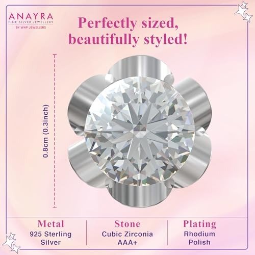 - Product Information: Presenting the Silver Elegant Floral Solitaire Stud Earring. The earring measures 0.8 cm in length. This stunning piece is carefully crafted from 925 Sterling Silver, enhanced with a rhodium finish, and adorned with AAA quality Cubic Zirconia (CZ). It is packaged in a unique and secure gift box, accompanied by a certificate of authenticity.